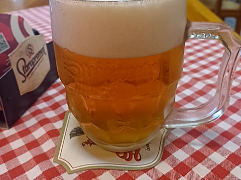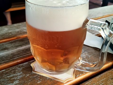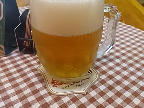 Malá útulná pivnice s velkým výběrem piv (my zůstali u Plzně).